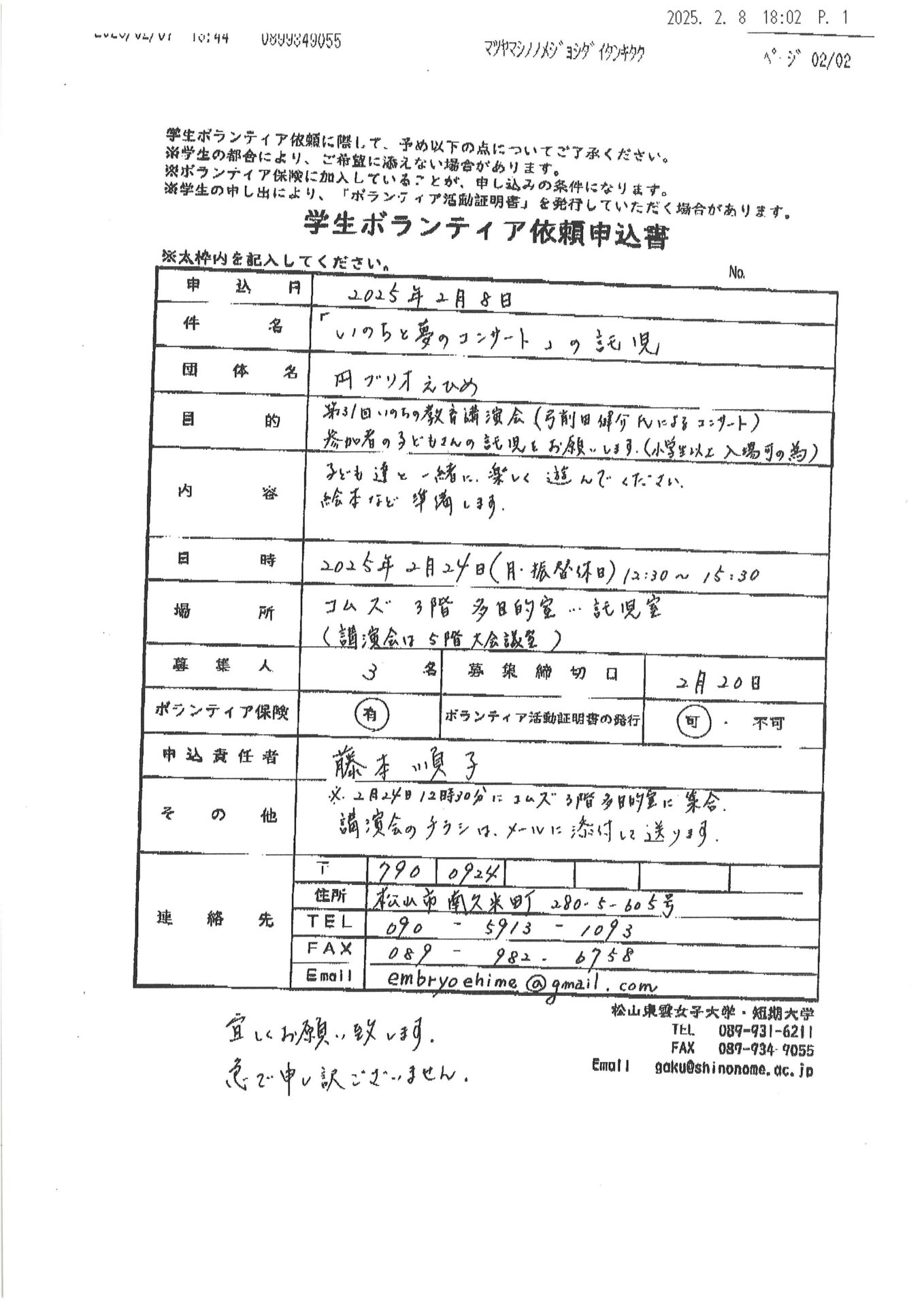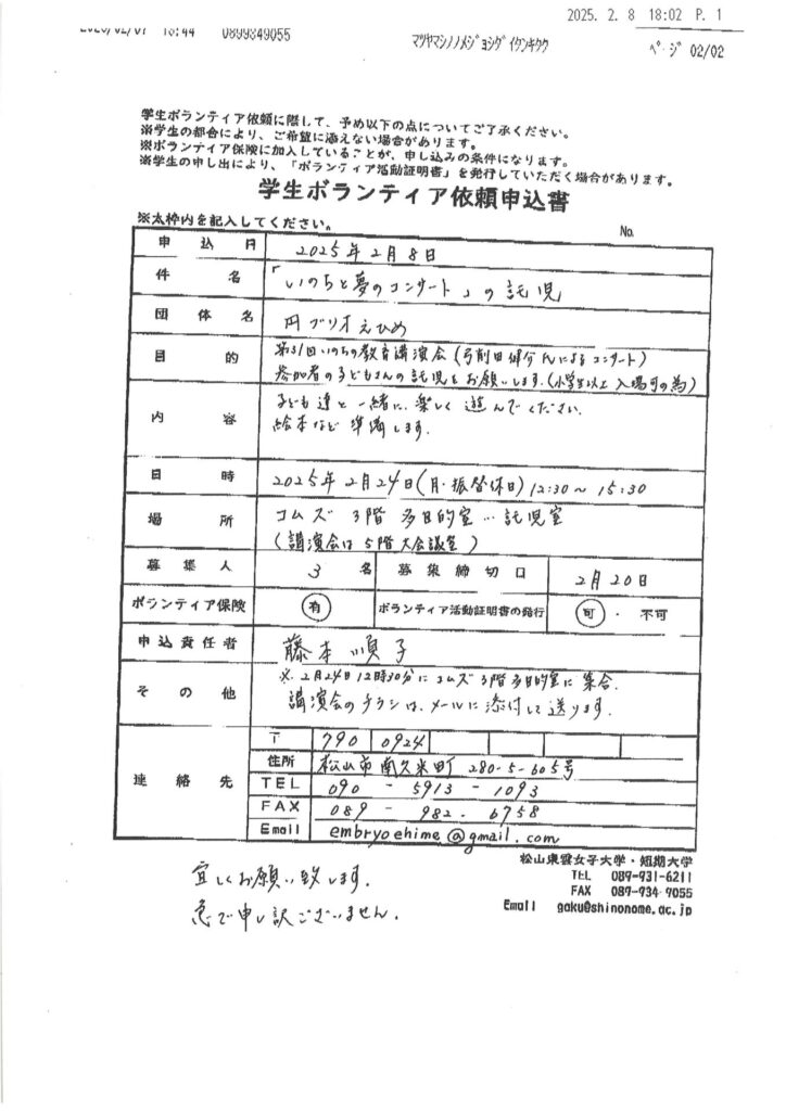 松山東雲女子大学 松山東雲短期大学 ボランティア情報