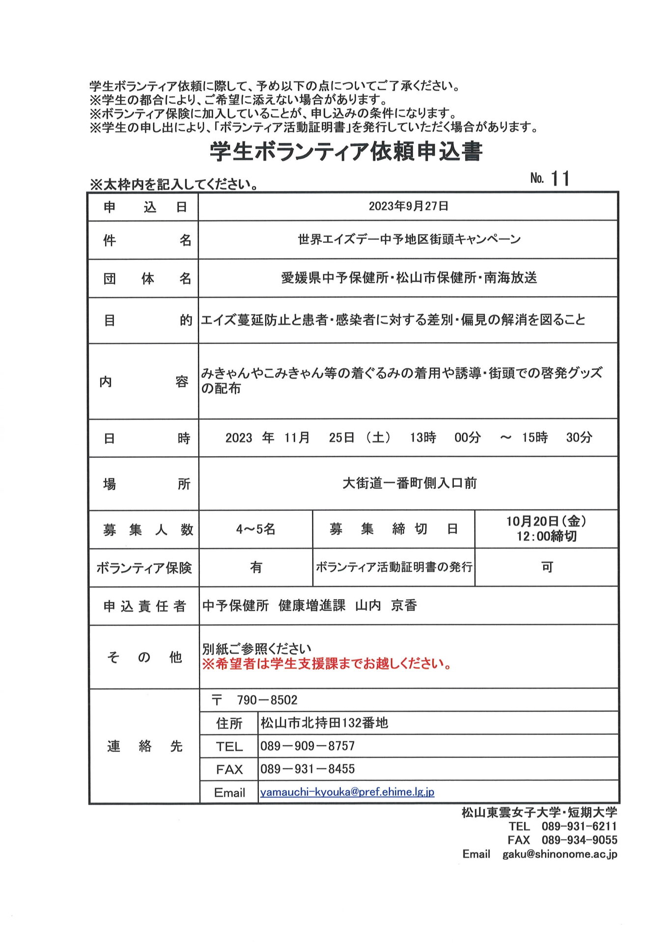 松山東雲女子大学 松山東雲短期大学 ボランティア情報